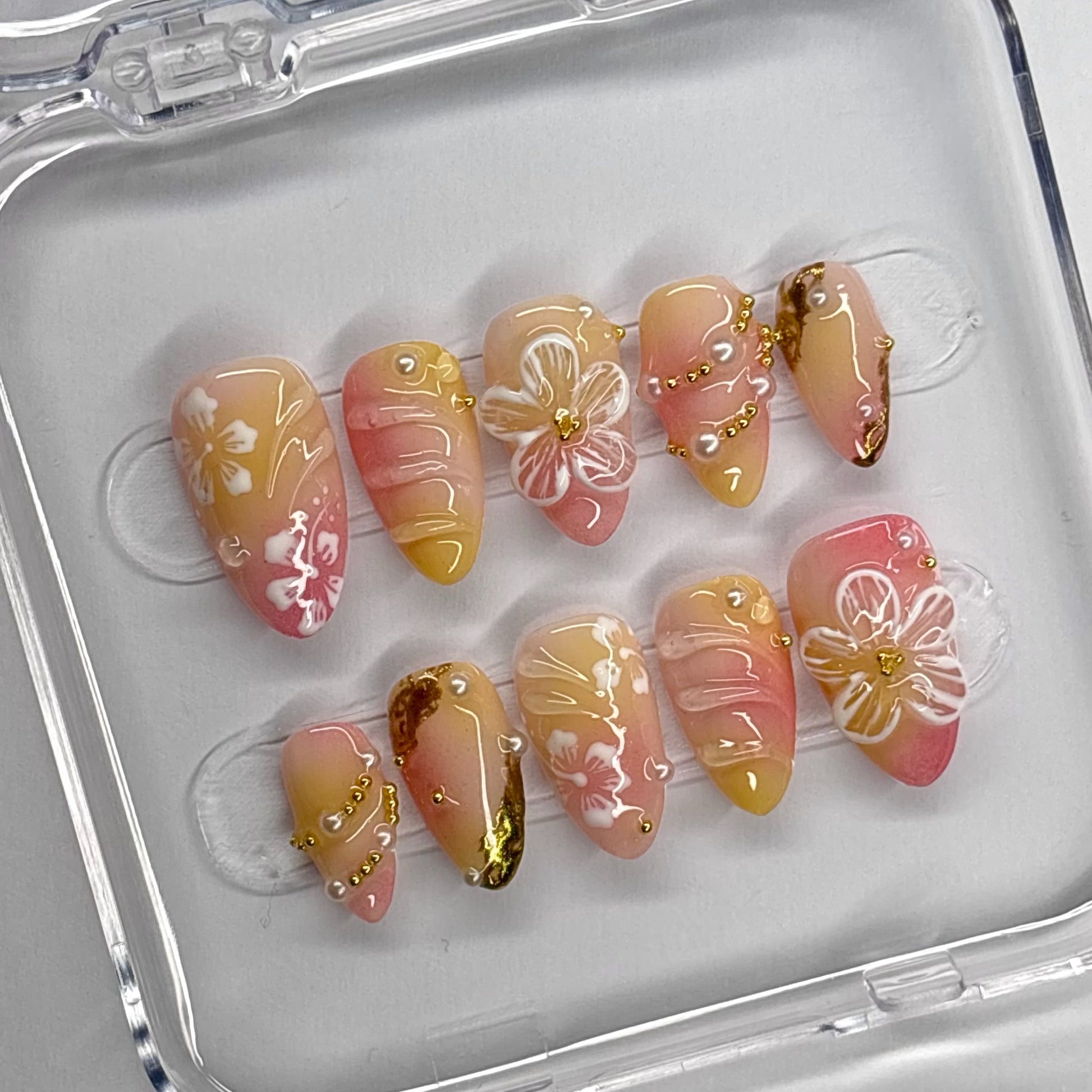Each set is custom-made to order, with a processing time of 5-10 days. Crafted using soft gel tips and high-quality professional gel polish.