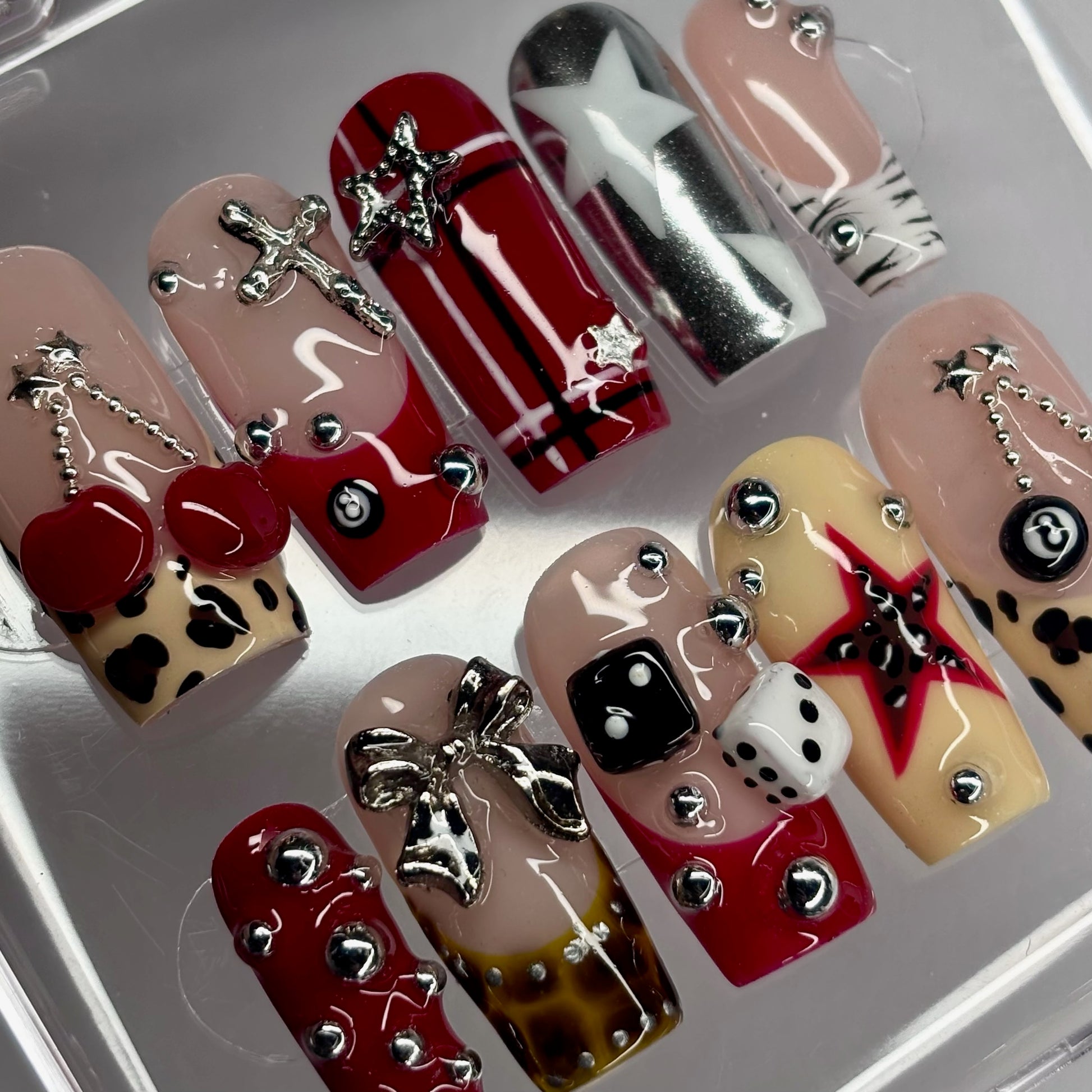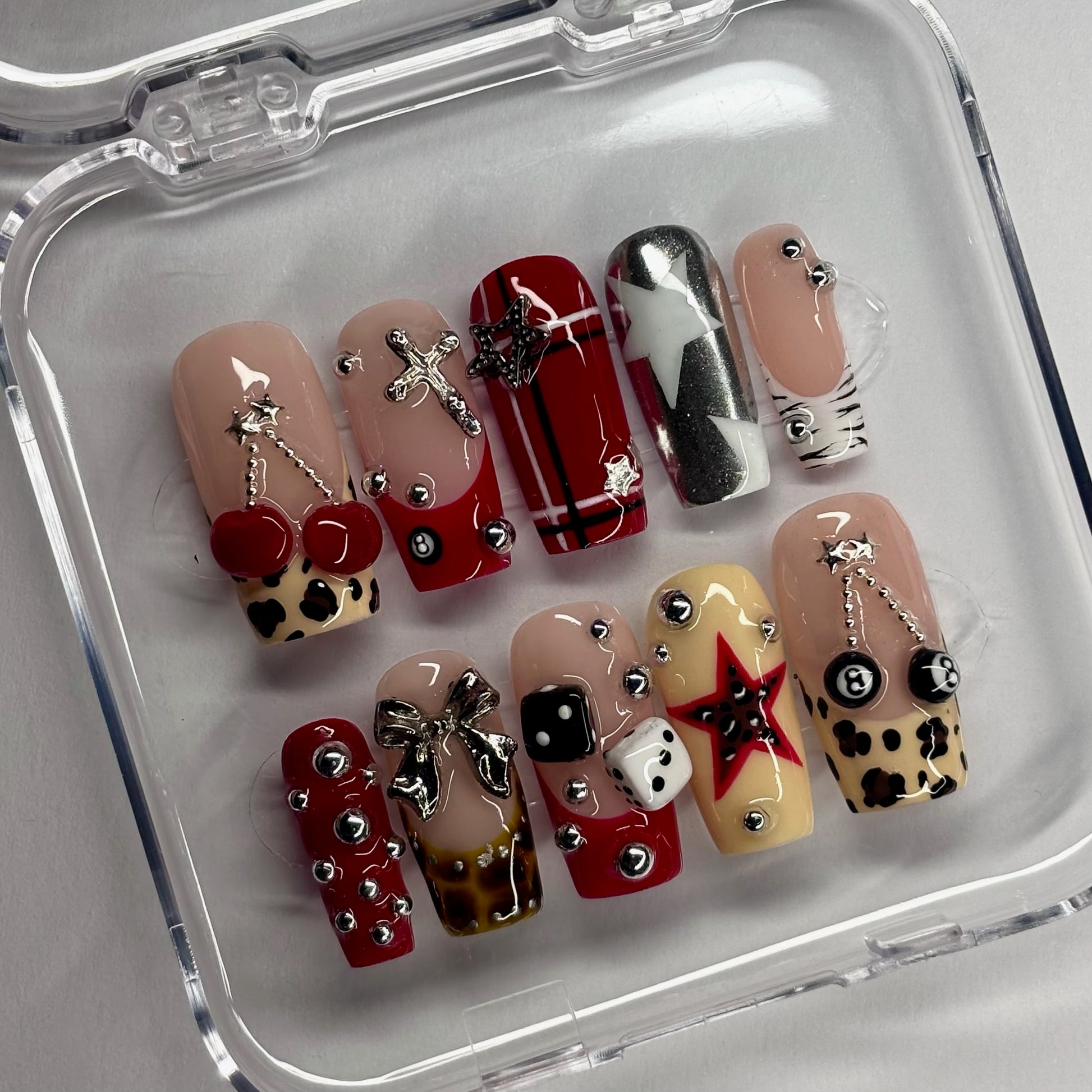 Each set is custom-made to order, with a processing time of 5-10 days. Crafted using soft gel tips and high-quality professional gel polish.